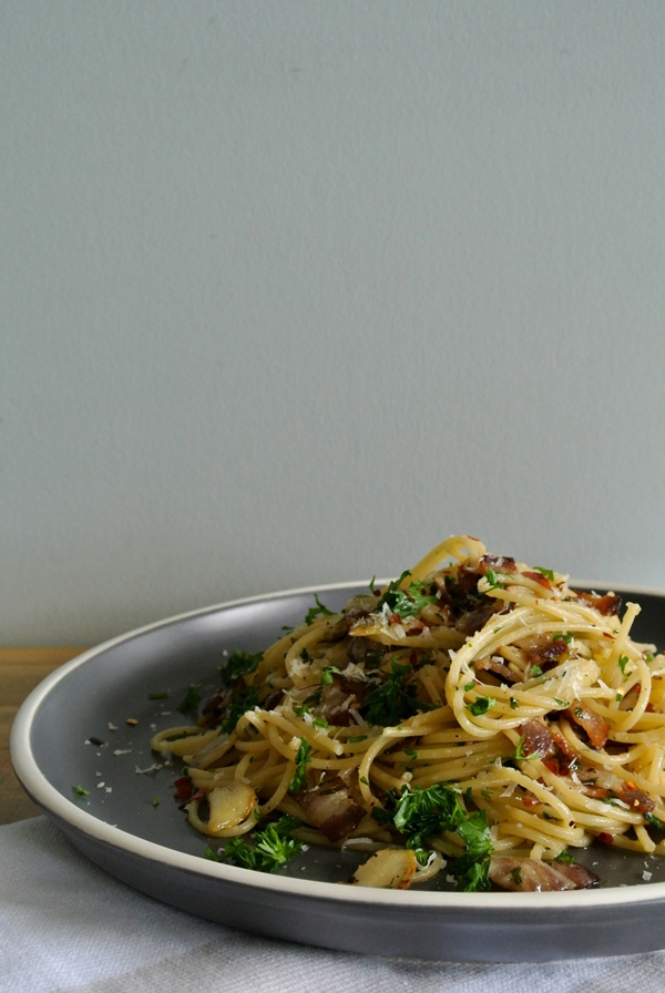 파스타 마무리에 올리브오일을 두르면 윤기가 나고 면이 달라붙지 않습니다. 아고오일(마늘을 올리브오일에 볶은 것)은 알리오 올리오 파스타의 핵심입니다. 얇게 썬 마늘을 올리브오일에 약한 불에서 천천히 볶아내면 고소하고 향긋합니다.